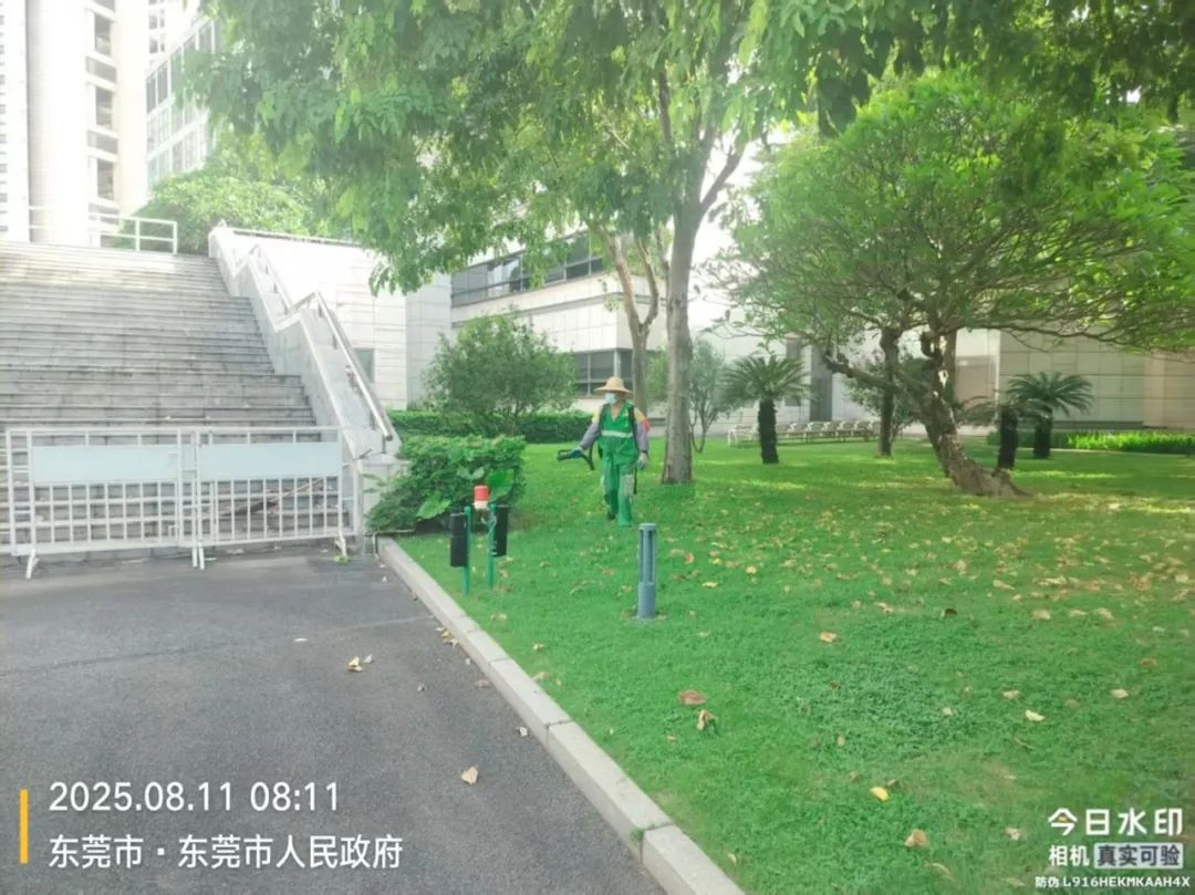 面对登革热、基孔肯雅热等虫媒传染病防控形势,百林公司迅速响应,由公司高层牵头成立防控小组,制定防控方案,多渠道开展宣传教育,提升员工防控意识。同时,针对东莞大道、市人民政府等区域的绿化管养工作,加强了灭蚊防控工作,在做好绿化苗木补植养护的同时,对沿线绿地、绿篱等易积水点位进行重点巡查与清理;着重对项目部、公共绿地、绿化带实施药物喷洒灭蚊作业,通过环境整治与灭蚊工作相结合,提升区域环境卫生水平。