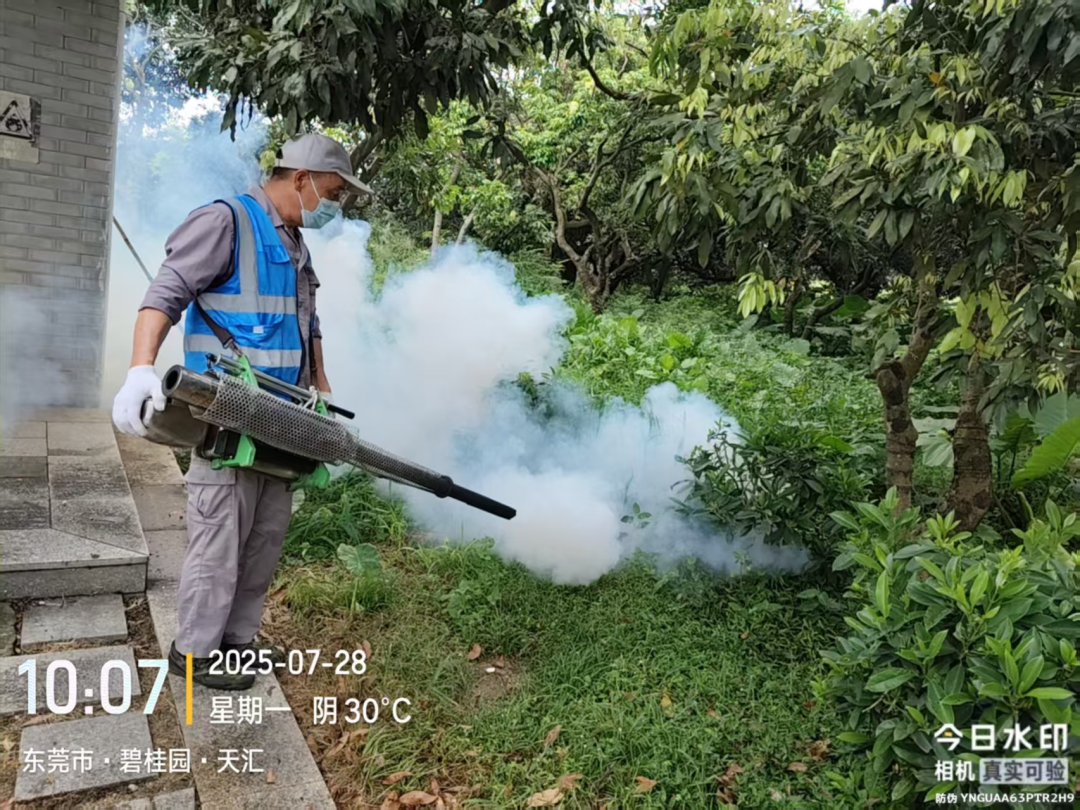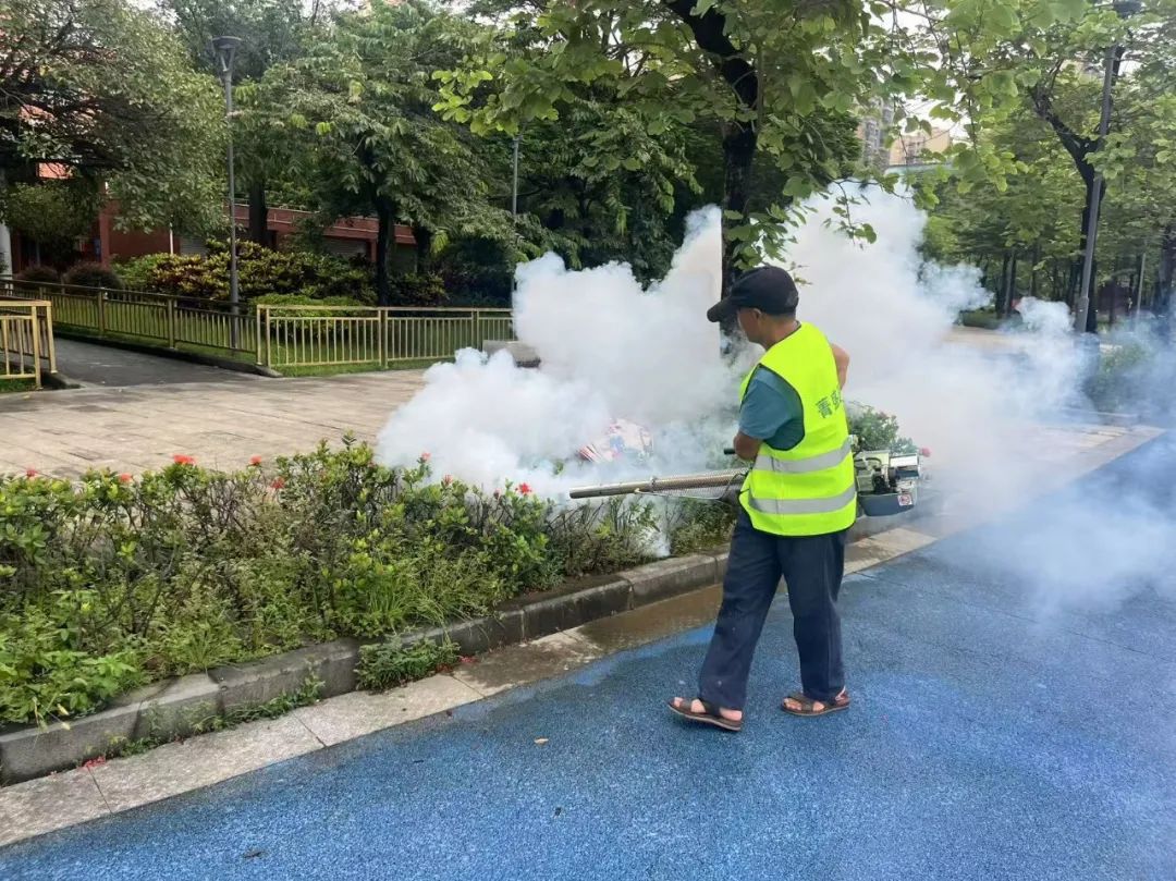 益民公司持续开展消杀防控工作,重点针对社区公园、广场,以及责任范围内绿化带等易滋生蚊虫区域,实施全方位、无死角消杀,坚决切断蚊虫繁殖途径。
